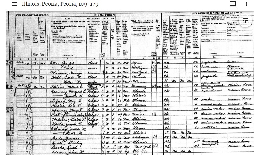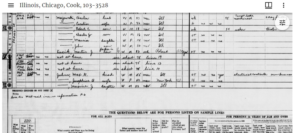 Data CollectedHousehold members, starting with the head of household were listed, along with race, sex, age at last birthday, marital status and birthplace. For anyone over age 14, there’s a summary of how time was spent in the previous week. Occupation and industry were included too.