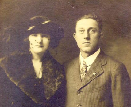 Photographs and Images* Maude Mae Sisson (standing L) and her mother Catherine Vanosdall Sisson (seated). The other two on the right are unidentified.* Though this photograph is clearly marked as "Maude Sisson" and identifies three children, it is unclear if they are her grandchildren or who they are. * Catherine Vanosdall Sisson's death certificate from May, 1928. * Clarence Sisson during World War I where he served in the U.S. Army's Engineering Company E, 308th. Clarence was the son of James William Sisson and first husband of Mary Leona Nelson. * In what appears to be a wedding photo, Clarence Sisson and Leona Nelson. Mary Leona Nelson and Clarence were married on Oct. 12, 1922. According to their marriage records, they were living in Jeromesville, OH and he was working for the railroad. Leona would marry Montgomery LeRoy Fry after her divorce from Clarence. Clarence was the son of James William Sisson -- Maude Mae's brother and died in 1934 of a self-inflicted gunshot. * Raymond Friend, taken at Donkin Studios, Atlantic City, NJ. "Ray" is Corporal T-5 George Raymond Friend, a grandson of Permilia Anna Sisson (Maude Mae's sister). Friend died Feb. 8, 1944 in Italy. Inducted into the U.S. Army in mid-1942 and served with the coast artillery, then was deployed to North Africa in March, 1943. Friend, who is a second cousin to most of us, is buried in the Savannah Cemetery.
