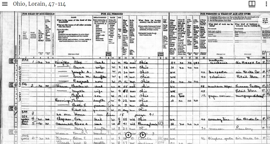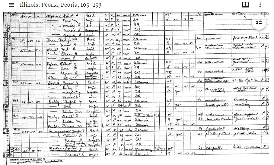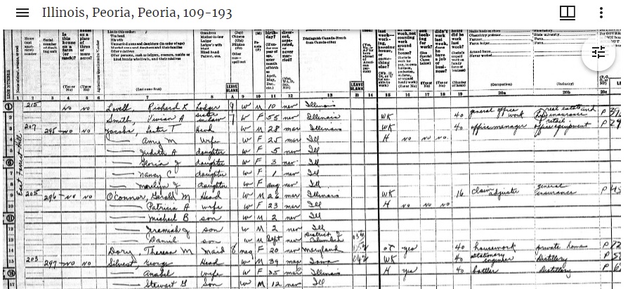 Data CollectedHousehold members, starting with the head of household were listed, along with race, sex, age at last birthday, marital status and birthplace. For anyone over age 14, there’s a summary of how time was spent in the previous week. Occupation and industry were included too.