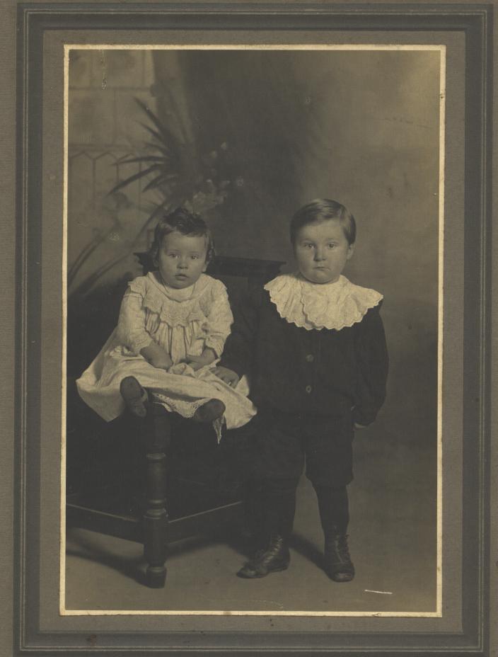 Photographs and Images* This picture is likely Clarence Kosht as an infant. Clarence was a son of Mary Catherine Fry Kohst (1875-1948).* Clarence Kosht as a teenager. * Lois Decker, the daughter of Flora Offineer Decker. Lois was born in November, 1908, so this picture is likely early in 1909. * Samuel (L) and Raymond Young, the sons of Flora Ethel Fry Young (1882-1960). Likely date: 1908.